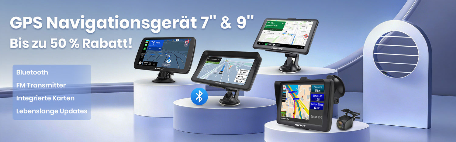 AWESAFE GPS Navigationsgerät Auto 7 Zoll Touchscreen FM Transmitter 12-24V PKW LKW mit Europa Karten jährliche kostenlose Updates