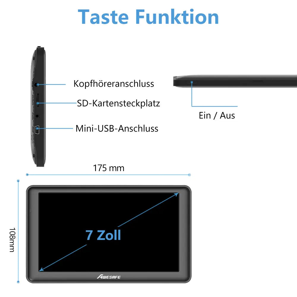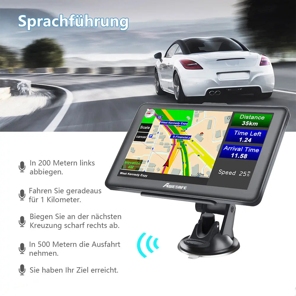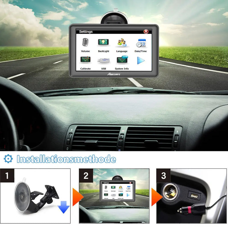 AWESAFE GPS Navigationsgerät Auto 7 Zoll Touchscreen FM Transmitter 12-24V PKW LKW mit Europa Karten jährliche kostenlose Updates