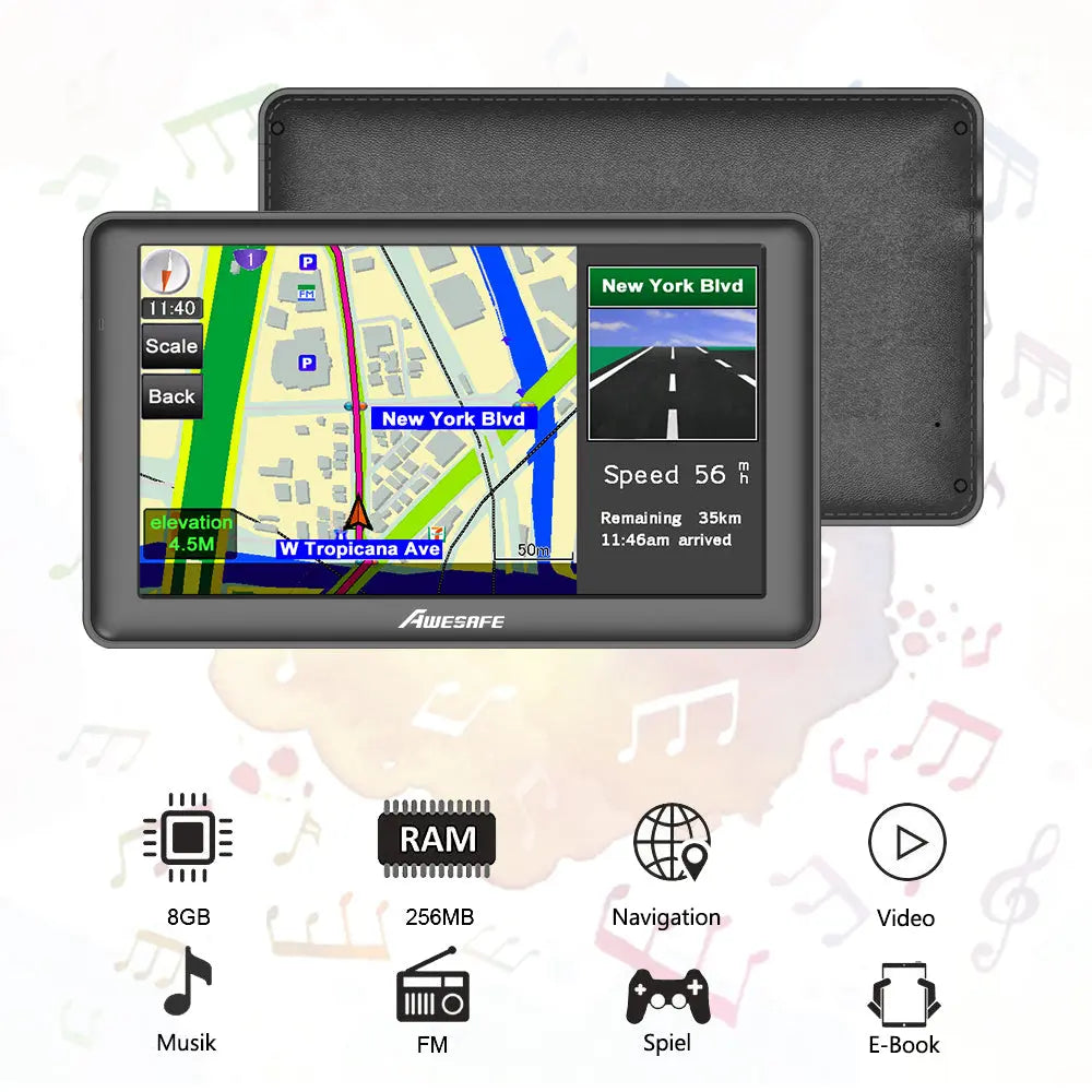 【Komfort-Funktionen】Das Navigationsgerät verfügt über eine präzise Bedienung der Detailkarte, mehrsprachige Navigation, einfach zu bedienende Schnittstellen, Musik-Player und Video-Viewer. Es ist mit einem microSD-Speicherkartensteckplatz(unterstützt bis zu 32GB) ausgestattet, der es ermöglicht Audio- und Videodateien abzuspielen.