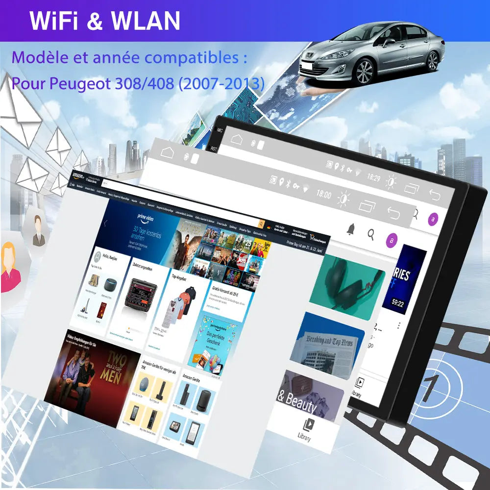 AWESAFE Autoradio 9 pouces Android 13 2+64Go avec Bluetooth/DSP/Andriod Auto & CarPlay sans fil - pour Peugeot 308/408(2007-2013)