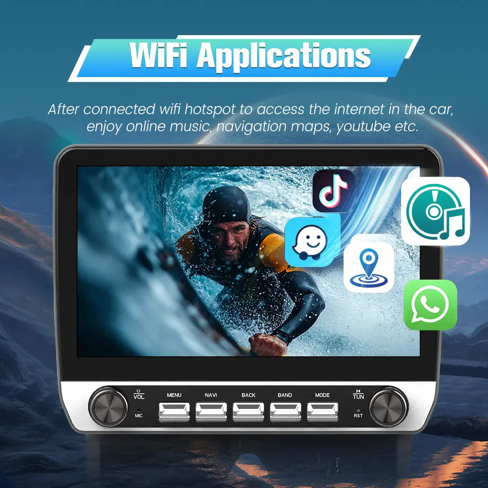 【GPS Navigation & WiFi】Built in offline North American map.Also support online map,when you connect WiFi you can use the GPS navigation anywhere.By WiFi you can download or delete apps in APP Store,as the same as phone.
