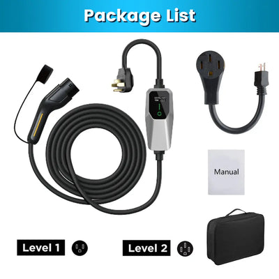 - 【Portability & Easy Operation】Charging your EV in anywhere and at any Time. The Portable EV Charger can be carried with the your car. Compact controller size for flexible installation and usability, and 25 feet of charging cable can fulfill your demands of charging in driveways and garages.