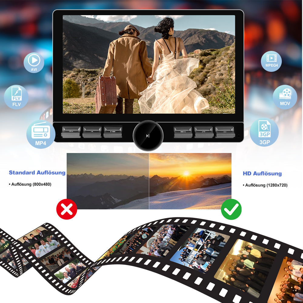 【FM Radio】Das Radio integrierter FM Tuner. Sie können sich die neuesten Nachrichten auskennen, Musik und Ihren Lieblingsradiosender hören. Zusätzlich verfügt das Autoradio über einen voreingestellten Equalizer(Pop, Rock, Jazz, Classic, Benutzerdefiniert)