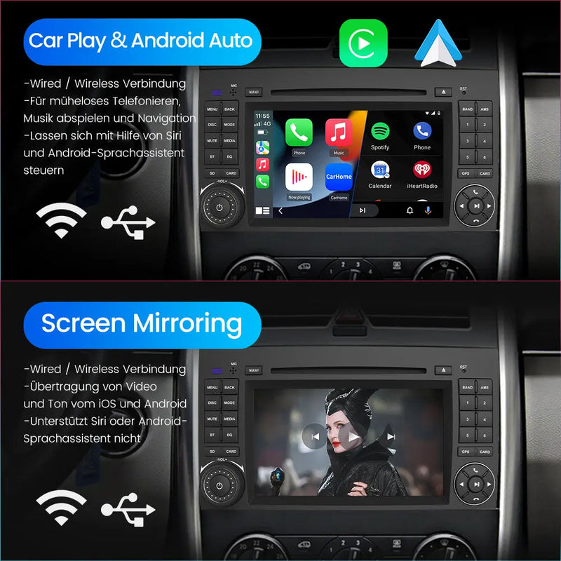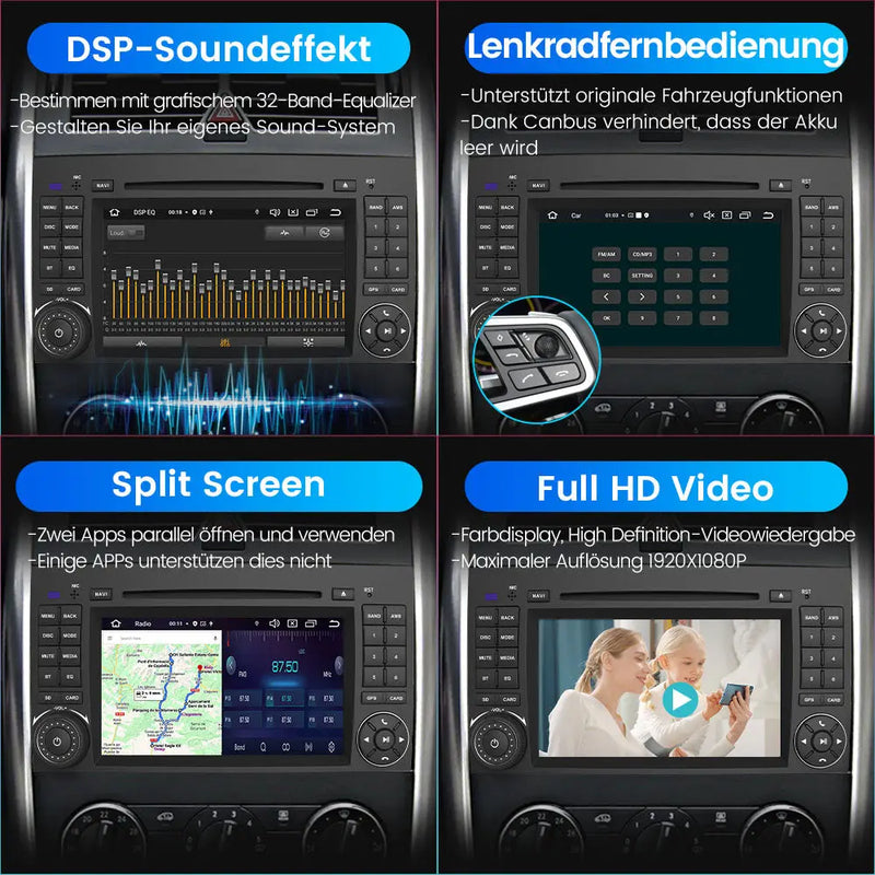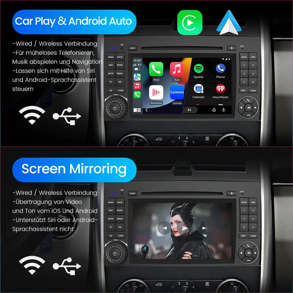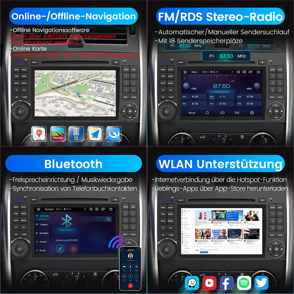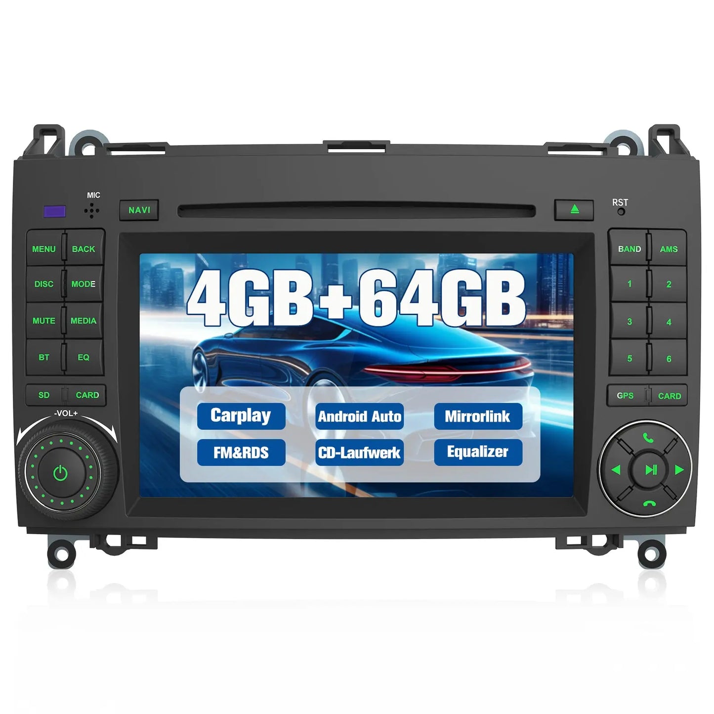 AWESAFE Android 13 Autoradio 7 Zoll 4+64GB mit Bluetooth, FM, CarPlay & Android Auto, für Mercedes-Benz A-Klasse W169/Viano Vito W639/Sprinter/B-Klasse W245