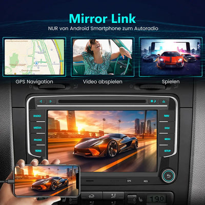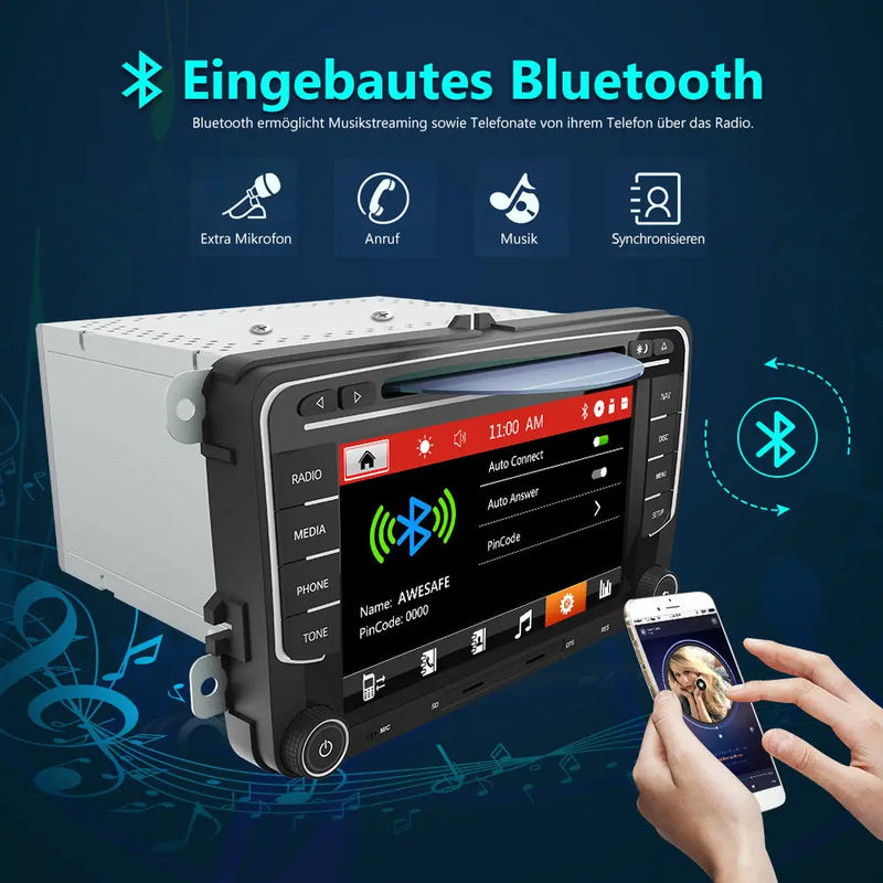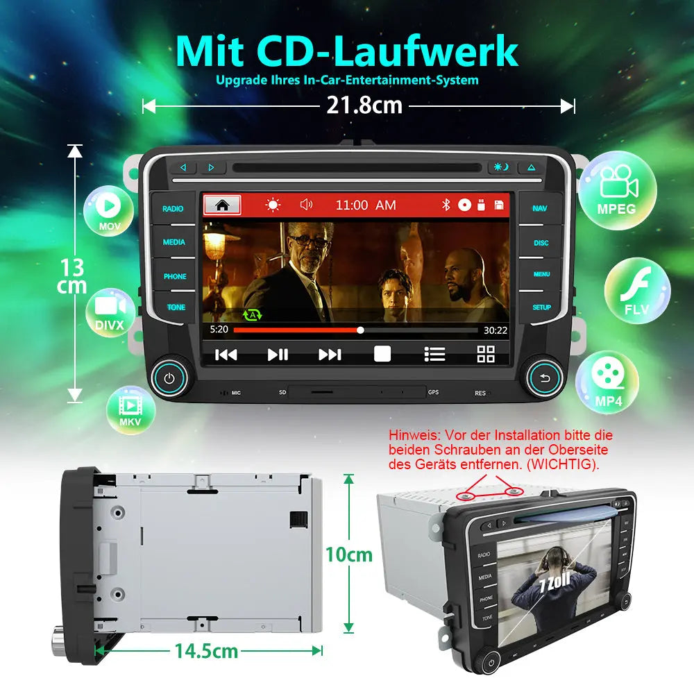 AWESAFE Android Autoradio 2DIN mit Bluetooth, CD/DVD-Player für Volkswagen Golf, Seat und Skoda