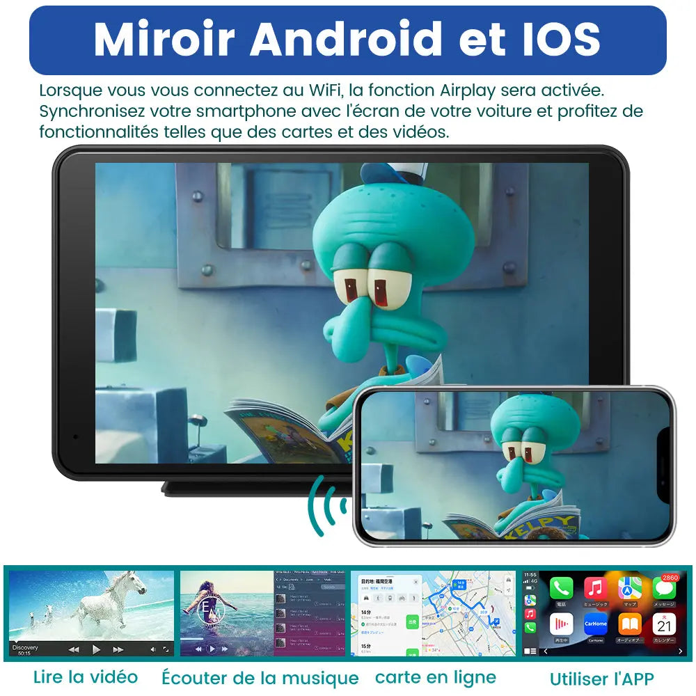 AWESAFE CarPlay Voiture 7 Pouces Touchscreen,Compatible Avec Ios Carplay et Android Auto sans Fil/Android Lien Miroir/Bluetooth/FM Sender