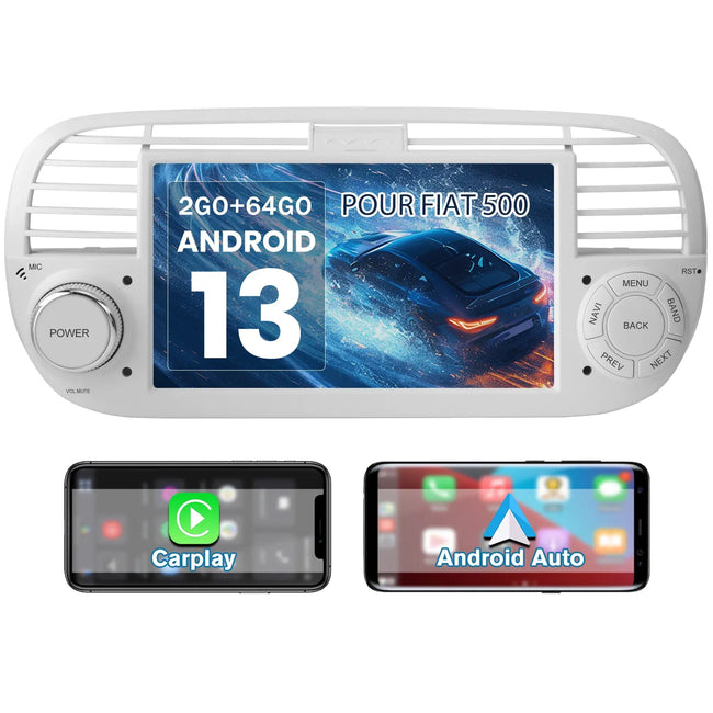 AWESAFE Android 13 7 Zoll Autoradio 2G+32G für FIAT 500 2007-2015, mit GPS Navigation Carplay Android Auto Bluetooth WiFi - Weiß