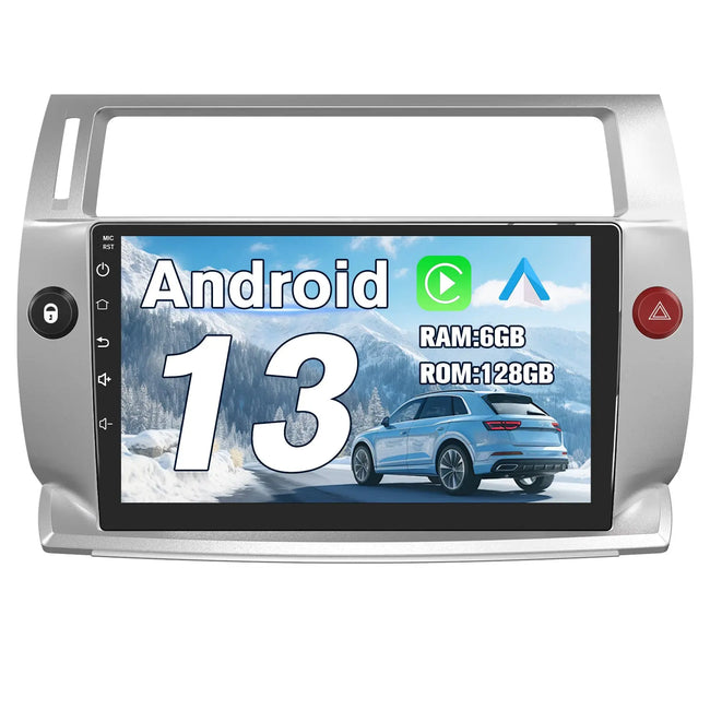 AWESAFE Android 13 Radio de Coche 9 Pulgadas 6GB+128GB con Bluetooth/DSP/4G/FM/RDS, CarPlay y Android Auto Inalámbricos - Citroën C4L 2011-2018