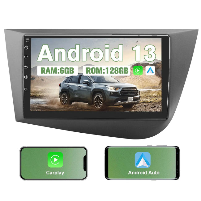 AWESAFE Android 13 Radio de Coche 9 Pulgadas 6GB+128GB con Bluetooth/GPS/FM/4G, CarPlay Inalámbrico y Android Auto - Pare Seat Leon MK2 (2005-2012)