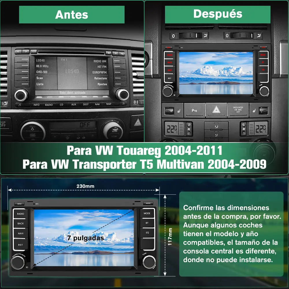 AWESAFE Android Radio de Coche Para VW Touareg 2004-2011 /VW Transporter T5 Multivan 2004-2009 Sistema Actualización de Radio de Pantalla Táctil con Carplay Inalámbrico Android Auto, Soporte Bluetooth WiFi Navegación GPS