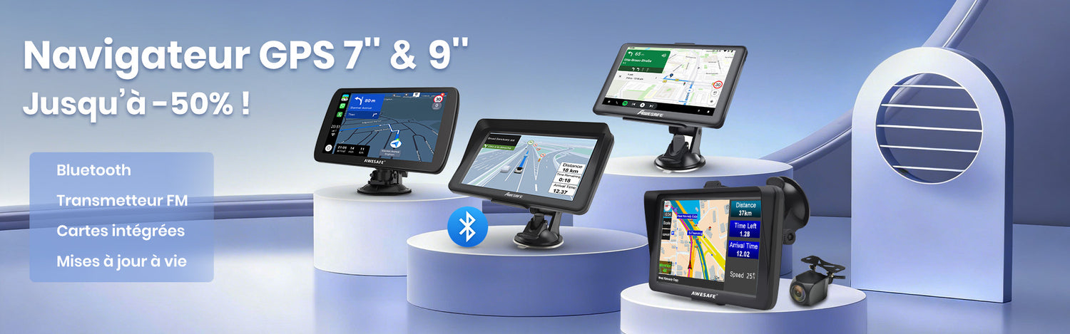 AWESAFE GPS Voiture Camion Écran Tactile 9 Pouces FM Bluetooth Cartes 2025 Mises à Jour Annuelles Gratuites