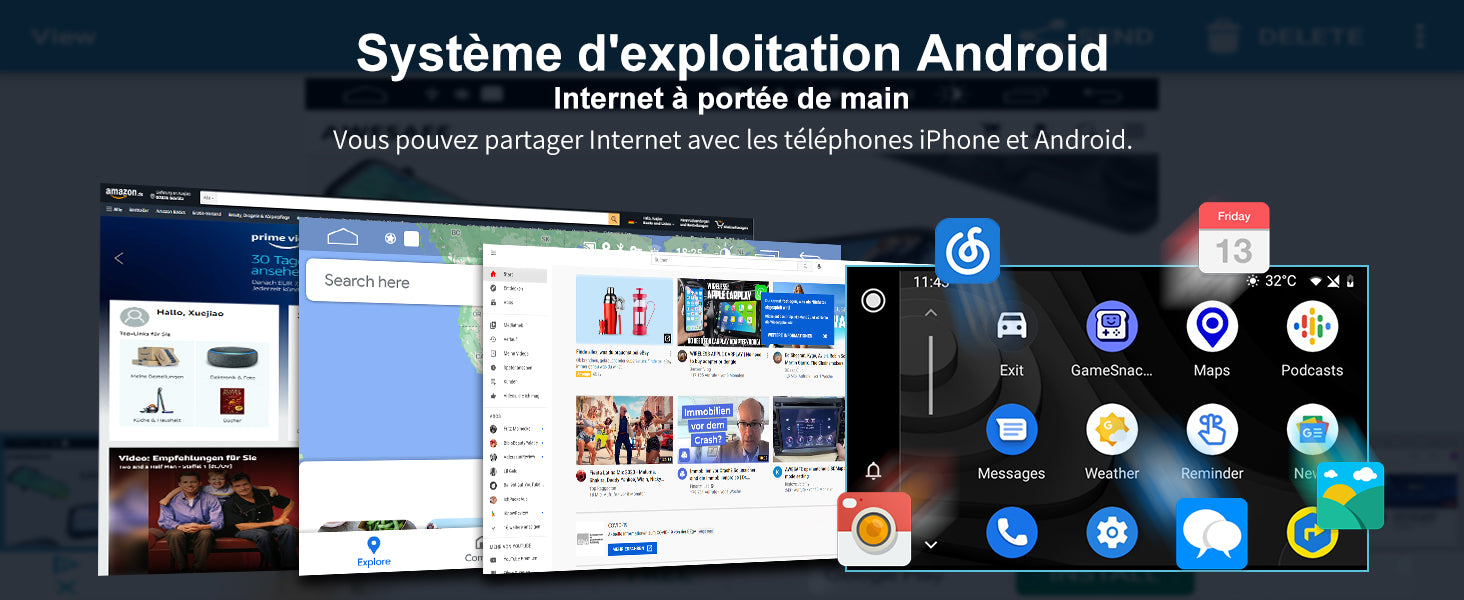 - 【Autoradio Android 13】 Cache intégré de 2 Go, mémoire de 32 Go, appels mains libres Bluetooth intégrés, module WiFi, navigation GPS, commande des boutons du volant, prise en charge DSP, radio FM/AM/RDS, prise en charge de la mise en miroir de l'écran, multi-touch, tous les formats audio et vidéo, l'application peut être téléchargée via le logiciel Play Store.