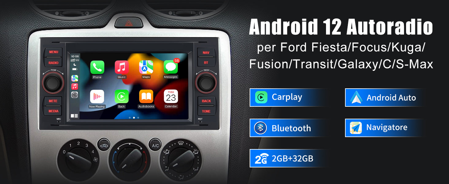 - 【Android 12.0 Autoradio 2 Din per Ford】 Modelli applicabili: per Ford Focus 2005-2007; Per Kuga 2008-2012; Per C-Max 2005-2007; Per S-Max 2006-2011; Per Fiesta 2005-2007; Per Fusion 2006-2011; Per Transit 2005-2011; Per Connect 2007-2009; Per Ford Galaxy 2005-2007; Per Mondeo 2003-2007. Dimensione pannello frontale 230mm x 120mm, potrebbe confermare se la dimensione è adatta prima dell'acquisto! (Senza CanBus)