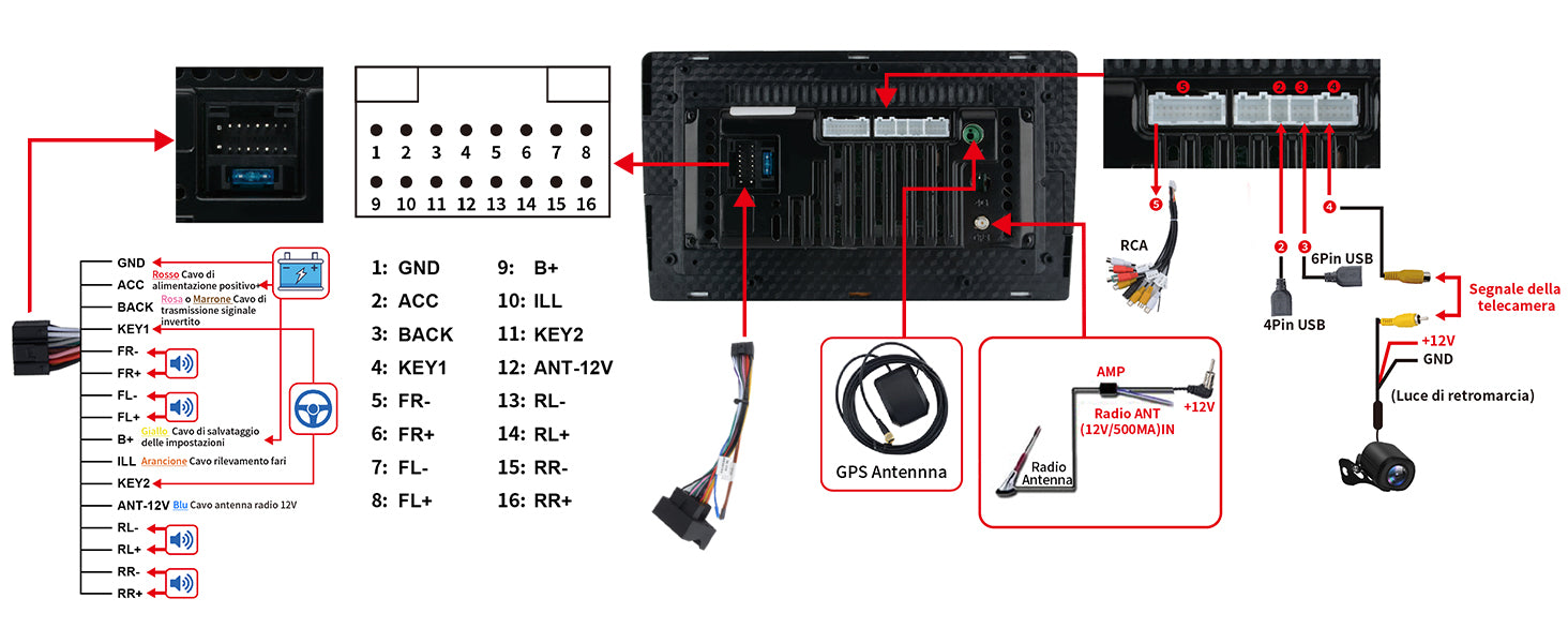 - 【Comandi al volante】 L'autoradio non contiene Canbus e non deve essere collegata a Canbus. È sufficiente collegare il cavo KEY1 o KEY2 dal connettore ISO al cavo del volante dell'auto, collegarli insieme e il comando del volante funziona correttamente.