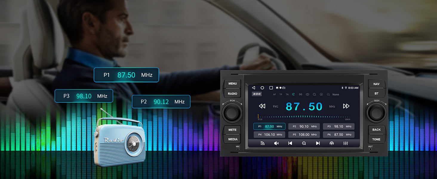 - 【FM / RDS】Immergiti in una qualità audio eccezionale, numerose stazioni FM, sintonizzazione semplice, opzioni di preimpostazione, scansione di stazioni locali, servizio RDS, ingresso AUX, connessione Bluetooth e compatibilità con i controlli del volante grazie alla nostra rivoluzionaria funzione di radio per auto.