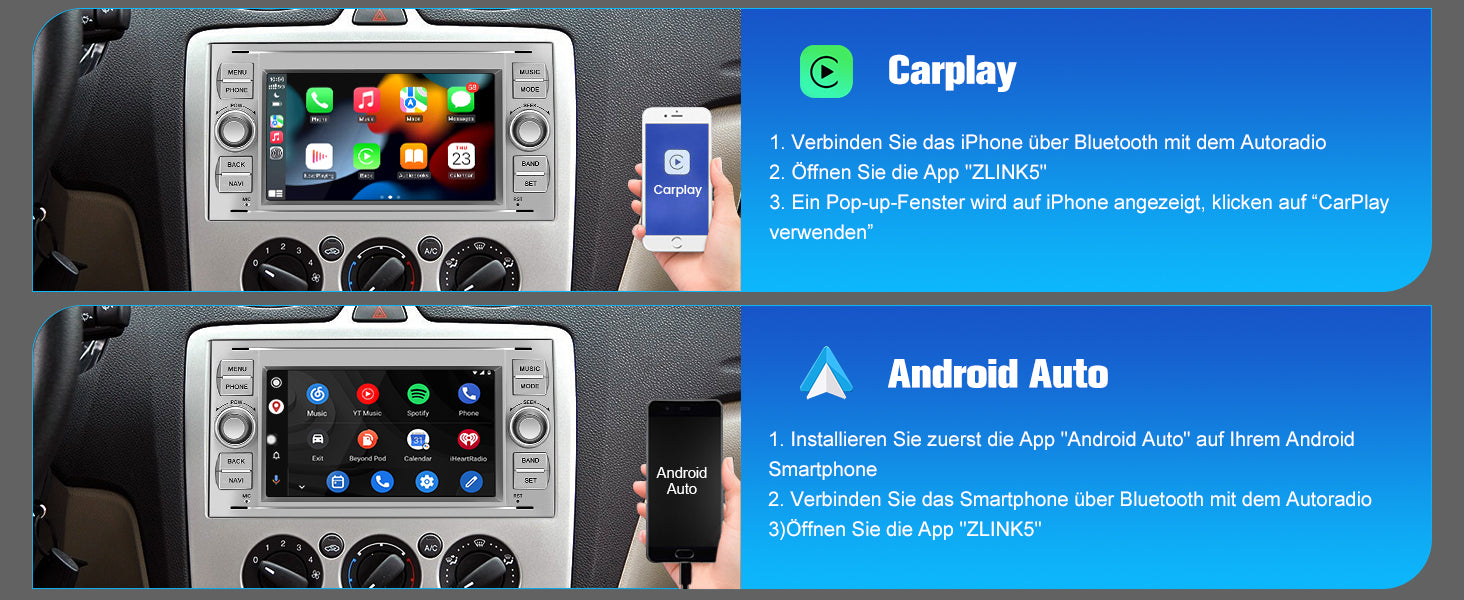 - 【Bluetooth】Mit der Bluetooth-Funktion können Sie Ihr Smartphone drahtlos mit dem Autoradio verbinden. Sie können Musik, Podcasts oder Hörbücher von Ihrem Smartphone direkt über das Autoradio abspielen. Darüber hinaus ermöglicht die Bluetooth-Funktion auch die Freisprechfunktion während der Fahrt. Sie können Anrufe entgegennehmen und tätigen, ohne Ihr Telefon in die Hand zu nehmen. Dies erhöht die Sicherheit und den Komfort während der Fahrt.