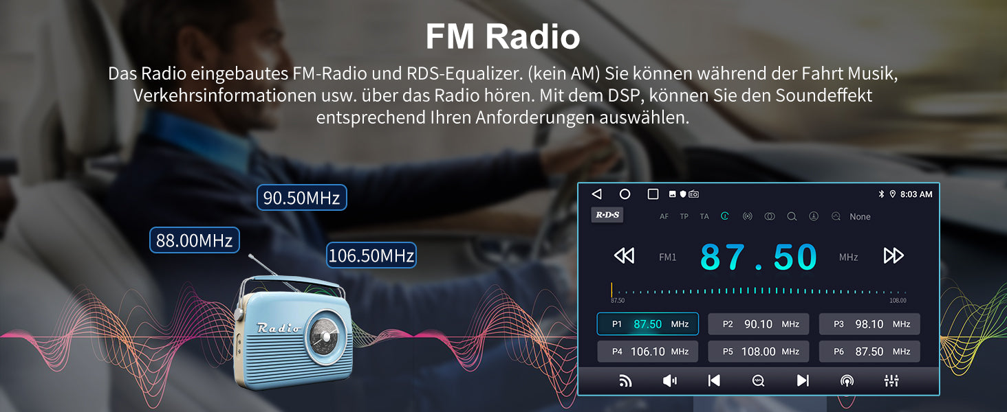 - 【FM Radio】 Das Autoradio bietet Ihnen eine Vielzahl von Unterhaltungsoptionen. Sie können Ihre Lieblingssender über den FM-Tuner oder optional den DAB+-Tuner empfangen. Das Autoradio verfügt über eine Senderliste, auf der Sie Ihre Favoriten speichern können. Zusätzlich können Sie über Bluetooth auch Internetradiosender streamen. Das Autoradio bietet zudem eine RDS-Funktion.