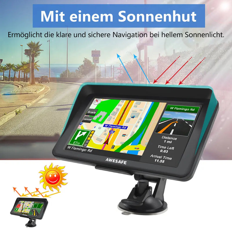 AWESAFE GPS Navi 7 Zoll Touchscreen Bluetooth reversibel integrierte Installation Europa Karten 2025 jährliche kostenlose Updates