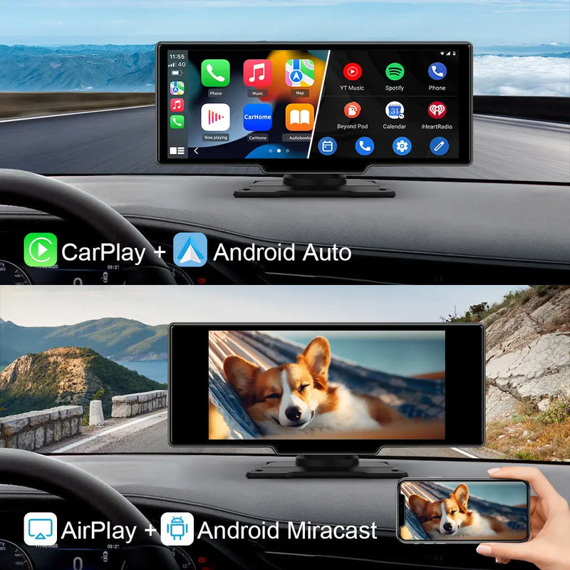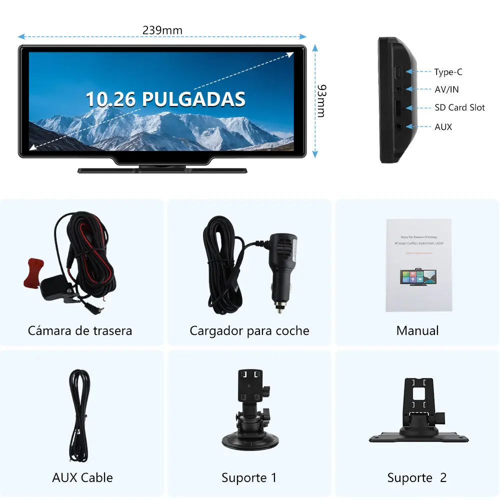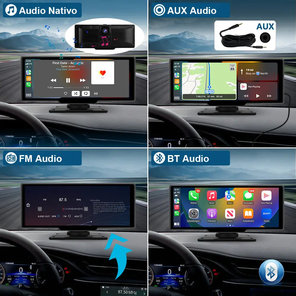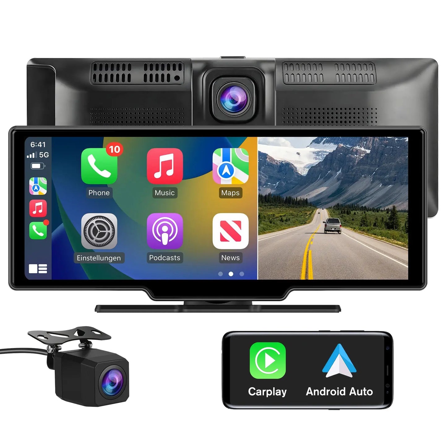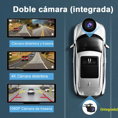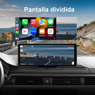 AWESAFE Estéreo Coche 10.26" con Cámaras Duales 4K+1080P, CarPlay Inalámbrico/Enlace Espejo/AUX + Base/Ventosa - Grabación en Pantalla Dividida