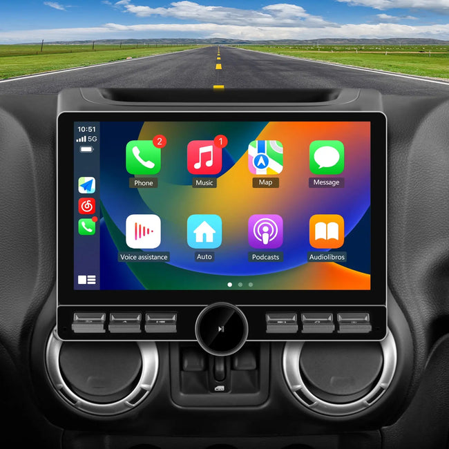 AWESAFE 10" Car Stereo with Wireless CarPlay & Android Auto, Bluetooth, FM Radio, DSP, Voice Control, GPS, Steering Wheel & Backup Camera for Jeep Wrangler 2007-2016