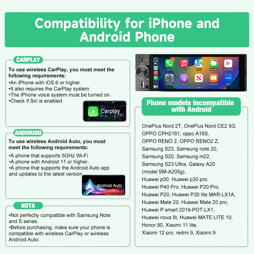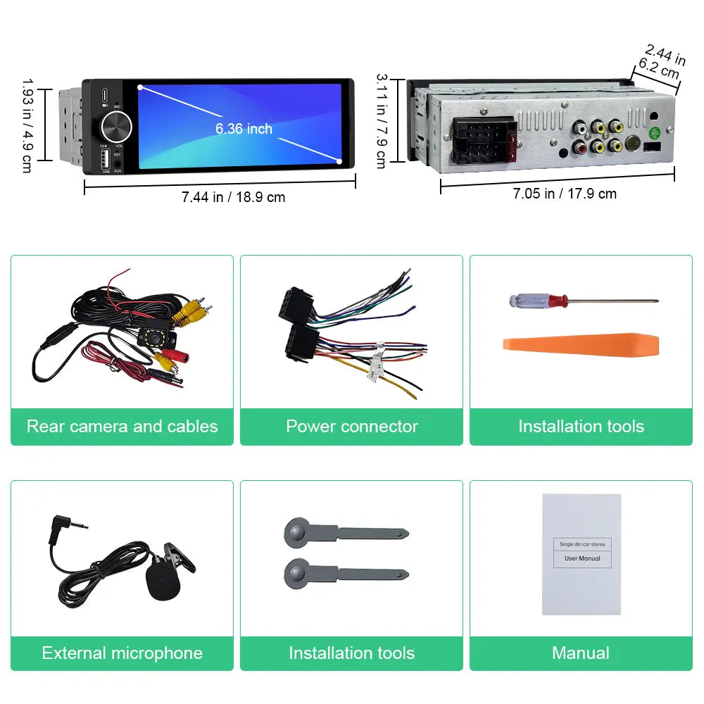AWESAFE Wireless CarPlay & Android Auto Car Stereo, 1-DIN 6.36 inch HD Touchscreen Radio with Bluetooth, Backup Camera, USB-C/USB/Mirror Link/Mic, GPS/FM