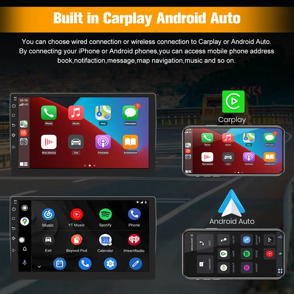 【Wireless Carplay & Android Auto】You can choose wired connection or wireless connection to Carplay or Android Auto.By connecting your iPhone or Android phones,you can access mobile phone address book,notifaction,message,map navigation,music and so on